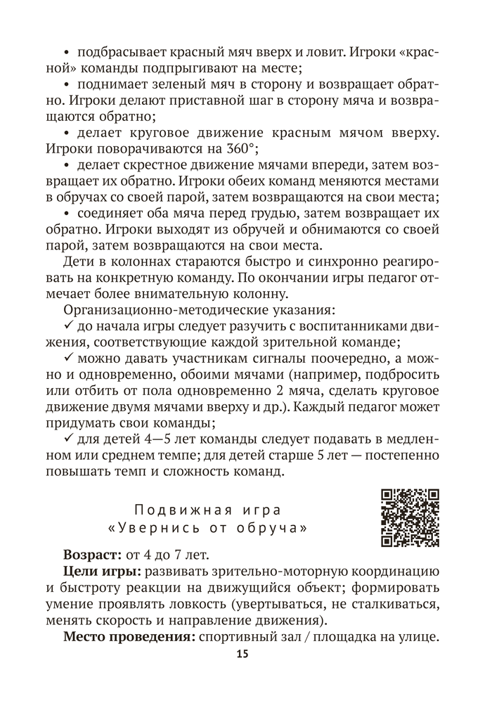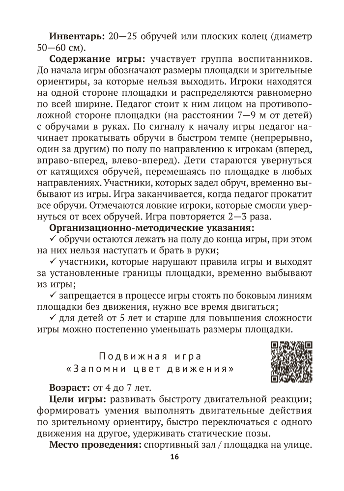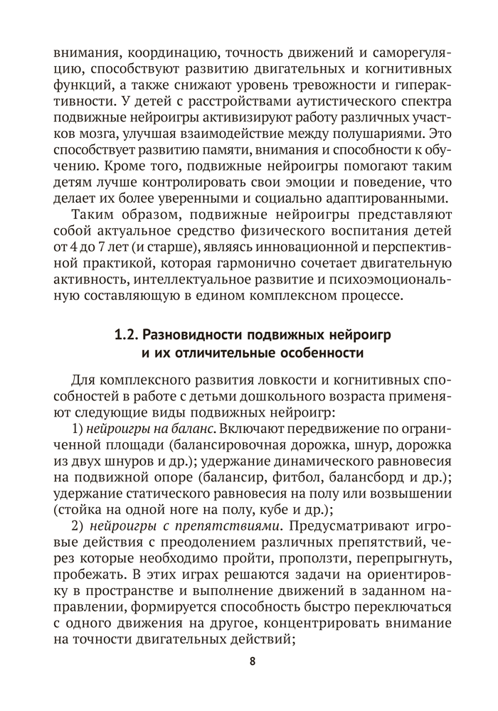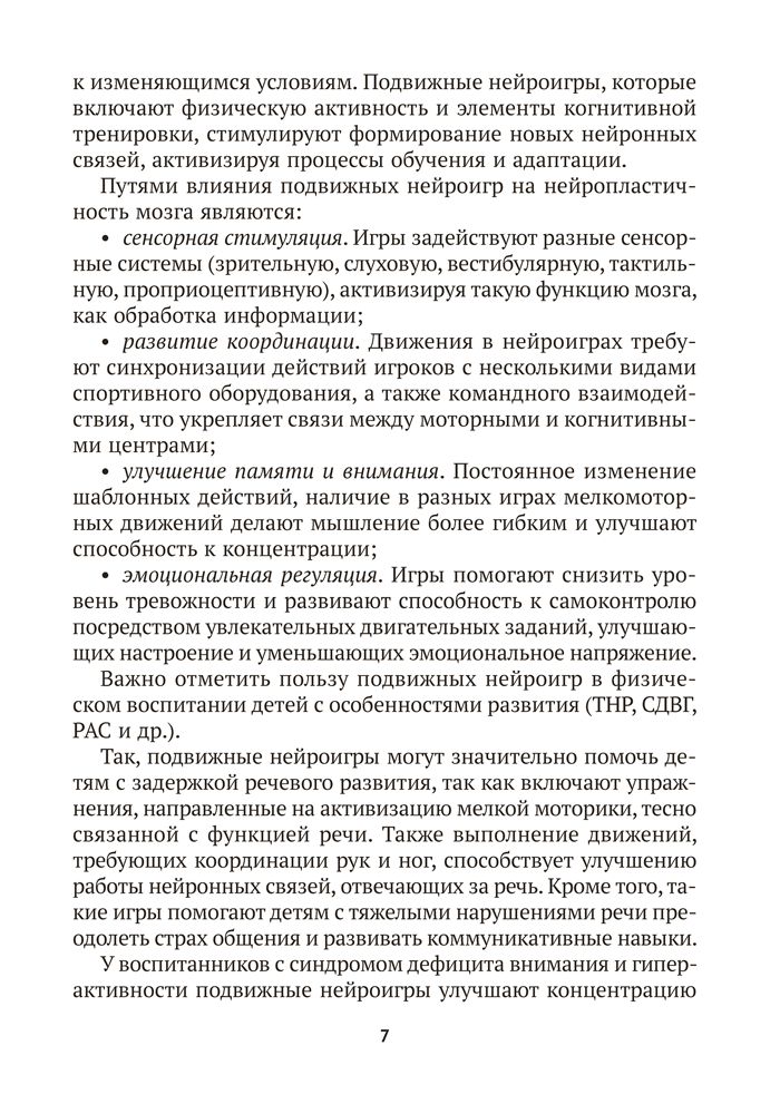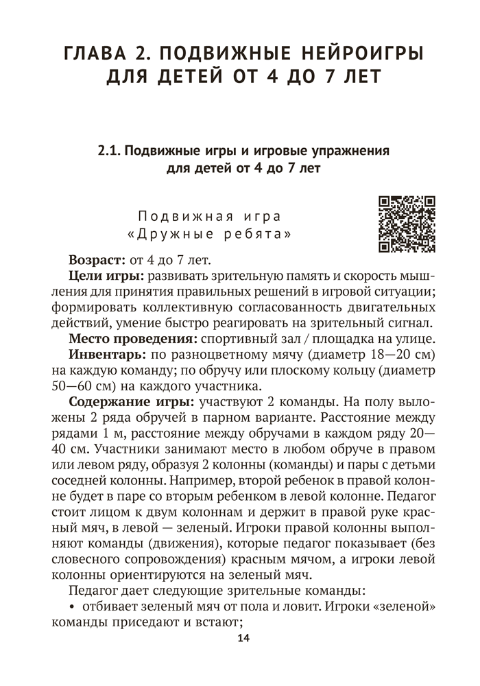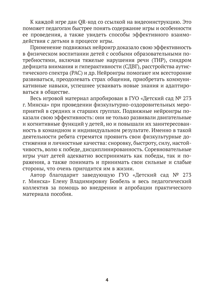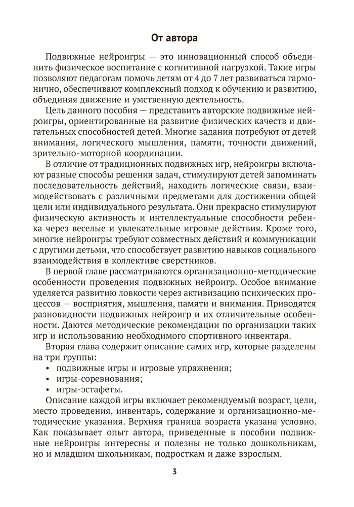 Пособие содержит авторские подвижные нейроигры, ориентированные на развитие физических качеств и двигательных способностей детей от 4 до 7 лет. Игры сопровождаются заданиями, которые требуют проявления внимания, логического мышления, памяти, точности движений, зрительно-моторной координации. Материалы издания способствуют реализации задач образовательной области «Физическая культура» учебной программы дошкольного образования.
