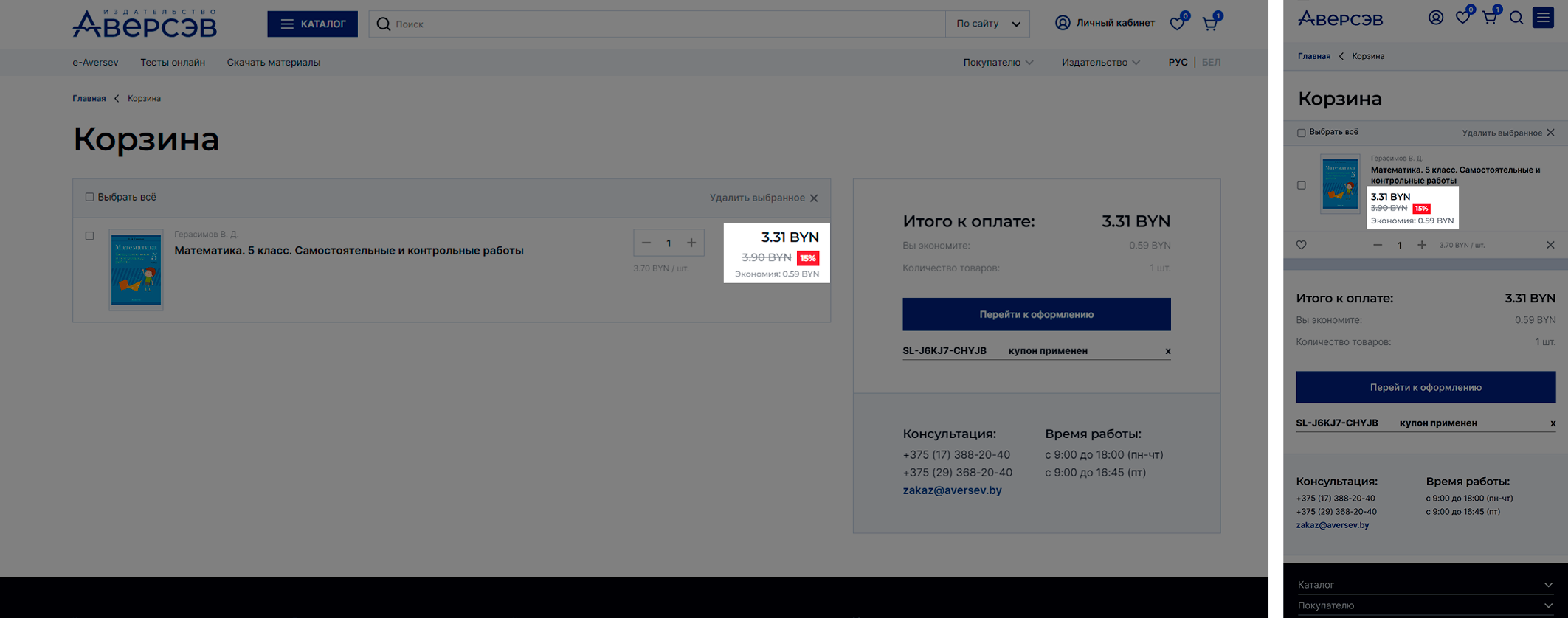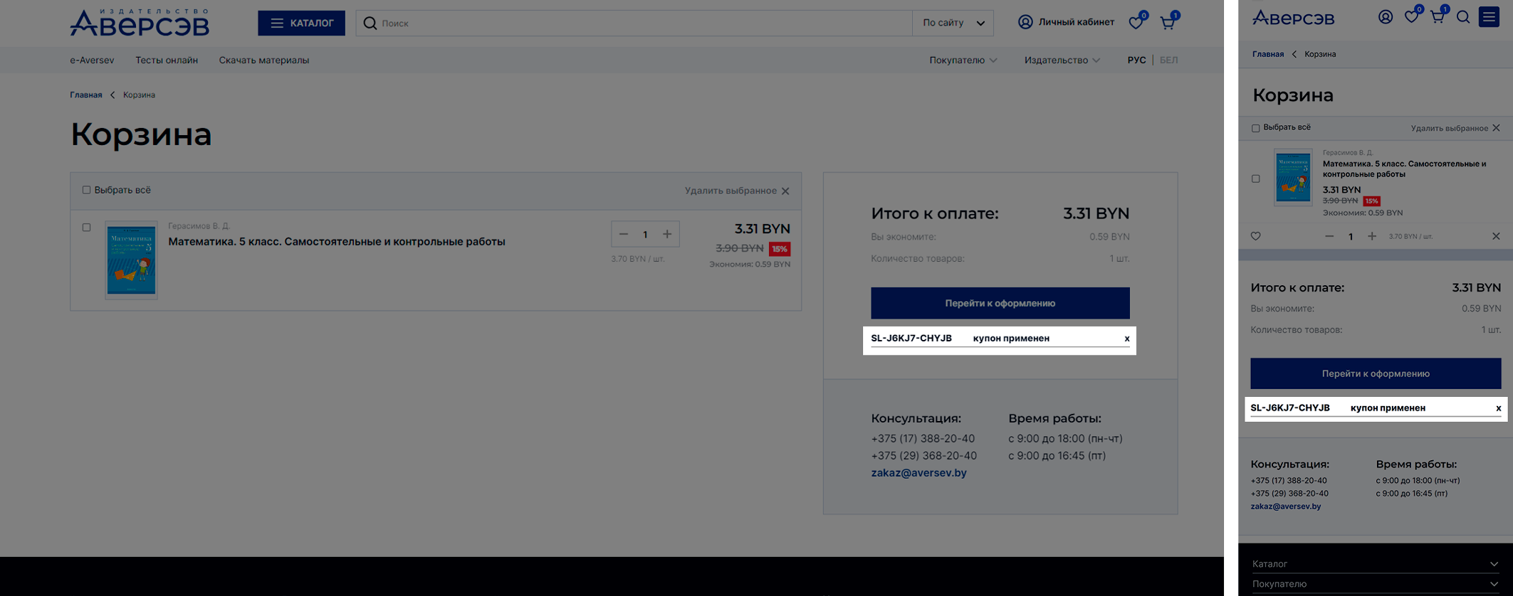 3. Промокод применится сразу, и вы увидите скидку на отдельные издания или на весь заказ.