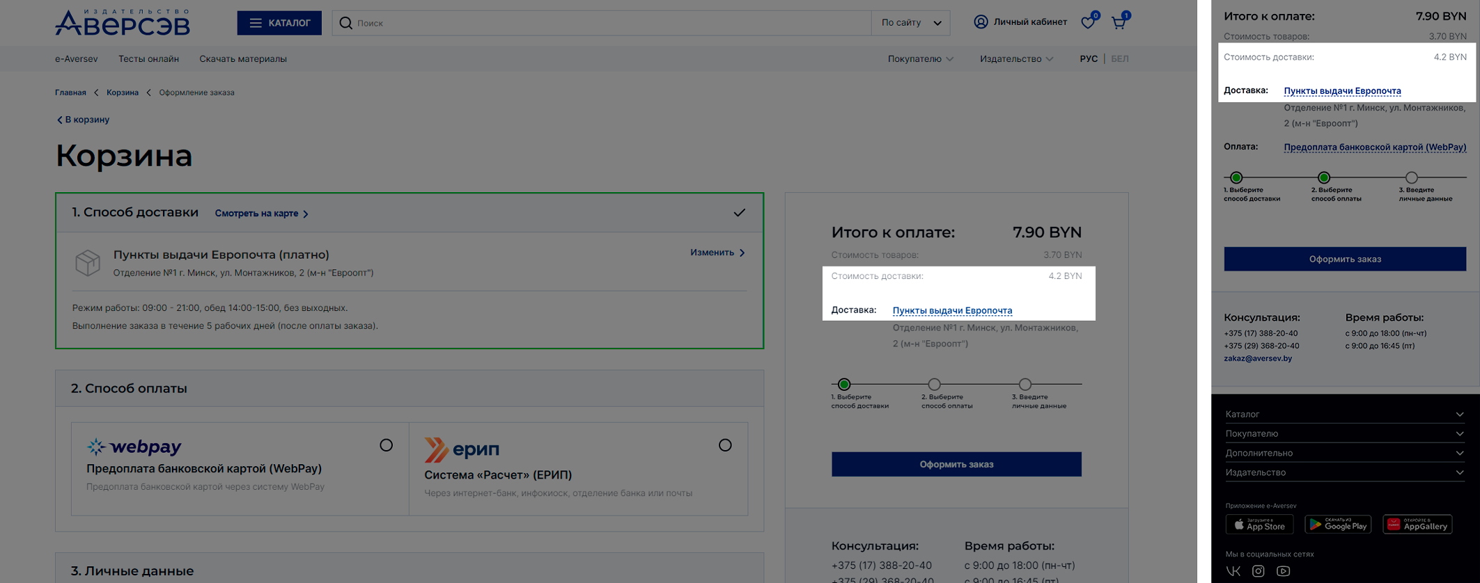 Стоимость рассчитывается по тарифам компаний и отобразится в Корзине, когда вы выберете способ доставки.
